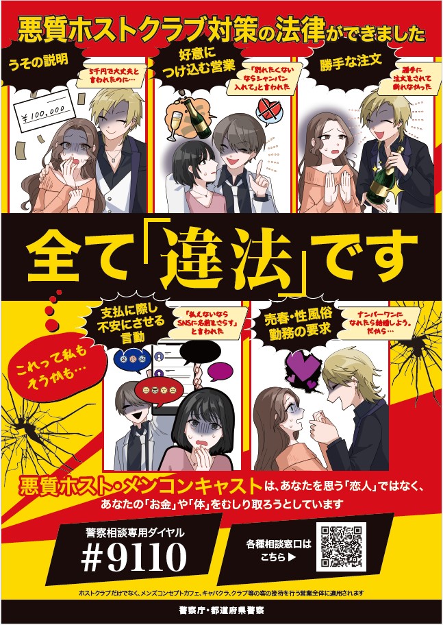 最近における悪質ホストクラブ問題をはじめとする風俗営業等をめぐる情勢を踏まえ、令和7年5月、悪質な営業行為の規制等を内容とする「風俗営業等の規制及び業務の適正化等に関する法律の一部を改正する法律」が成立し、一部の規定を除き、公布の日から起算して1月を経過した日から施行されます。