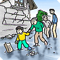 - 病人、体の不自由な人は必ず家族や地域の人々と一緒に避難しましょう。