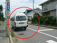 あなたが左(ひだり)を見(み)たとき、右(みぎ)から左(ひだり)へ 走(はし)って行(い)った車(くるま)のかげになって、左(ひだり)から近(ちか)づく車(くるま)が見(み)えなかったのです。