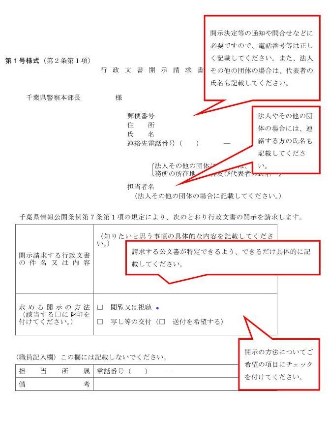 - ご不明な点がありましたら、千葉県警察本部情報公開・個人情報センターにお問い合わせください。