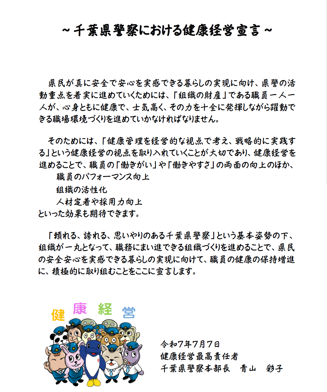 千葉県警察における健康経営宣言