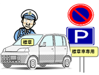 - 高齢運転者等は、交付を受けた標章を普通自動車の前面の見やすい箇所に掲示することにより、駐車することができます。