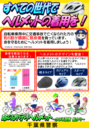 年齢に関わらず、買い物や通学などの日常生活においても、自転車に乗るときは、ヘルメットを着用して、頭部を保護しましょう。