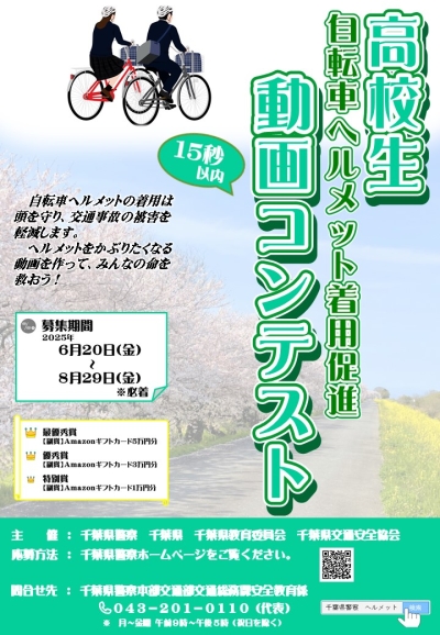入賞作品は、運転免許センターを始めとする警察施設のほか、千葉県内のデジタルサイネージ等で放映します。