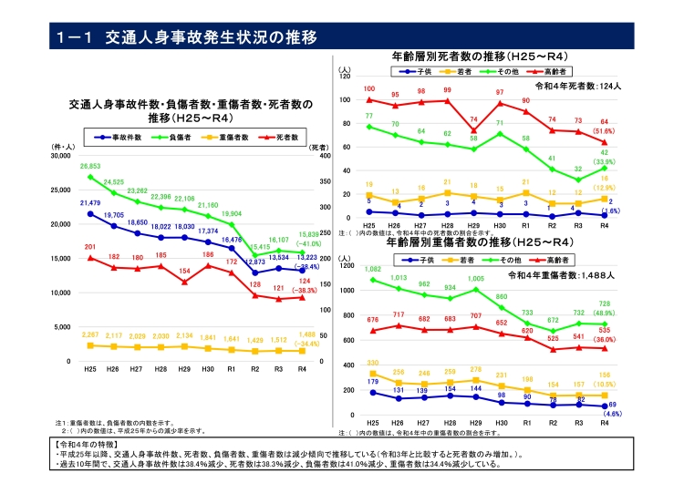 ・死者数:124人(同+3人)【内訳:子供2人、若者16人、その他42人、高齢者64人】