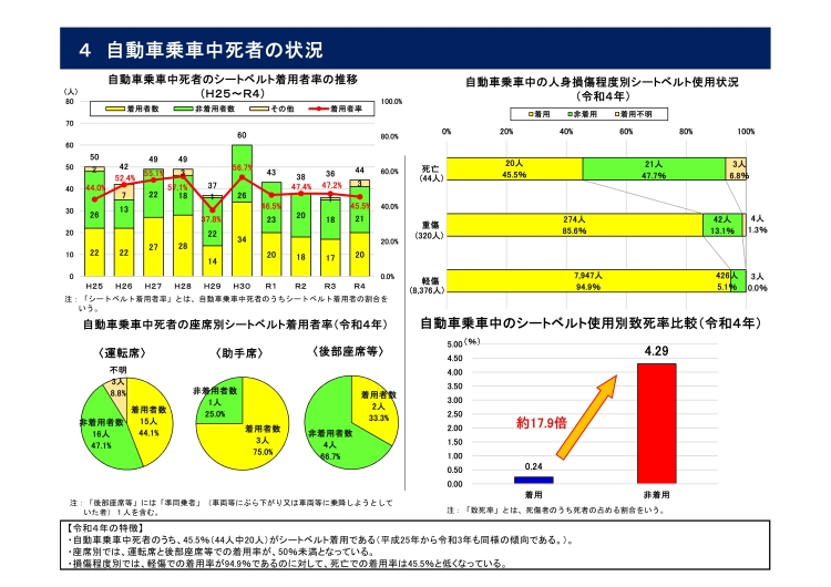 ・自動車乗車中死者のうち、シートベルト着用者率が約5割(45.5%)と低い。