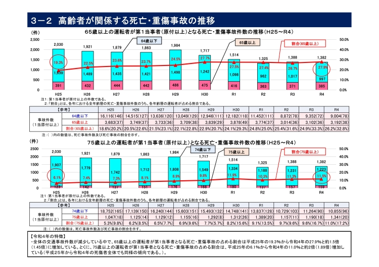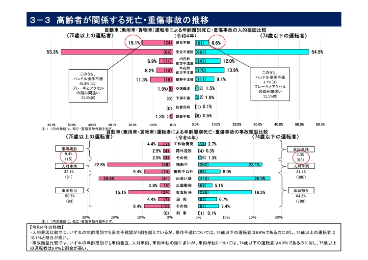・高齢運転者による死亡・重傷事故は、全年齢層の運転者による死亡・重傷事故の約3割(27.9%)を占めている。