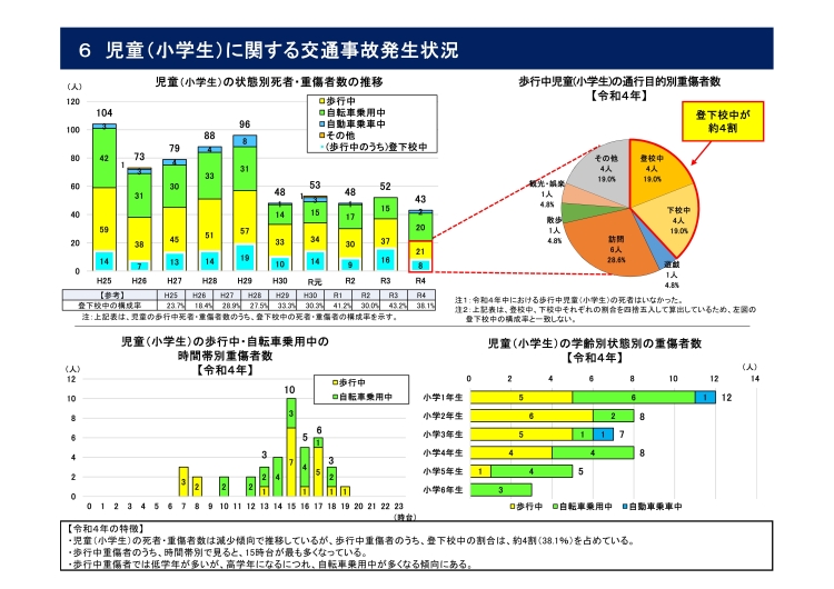 ・児童(小学生)の歩行中重傷者のうち、登下校中が約4割(38.1%)を占めている。