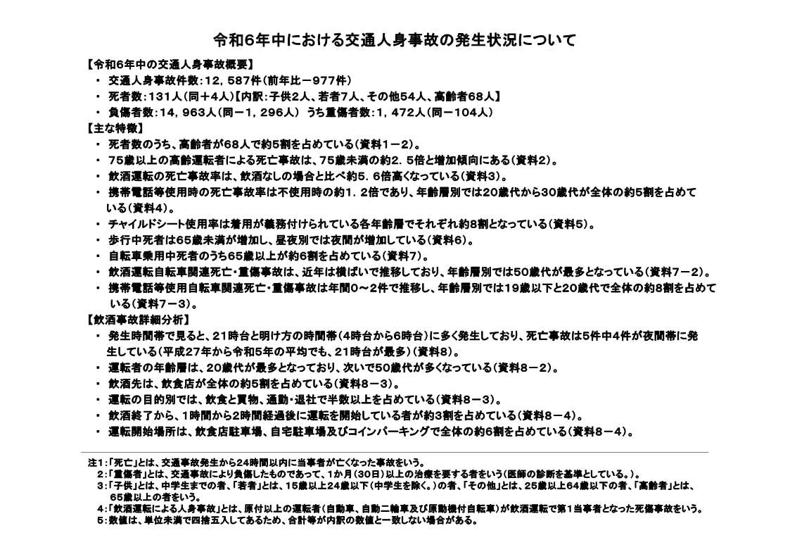 令和6年中における交通人身事故の発生状況について