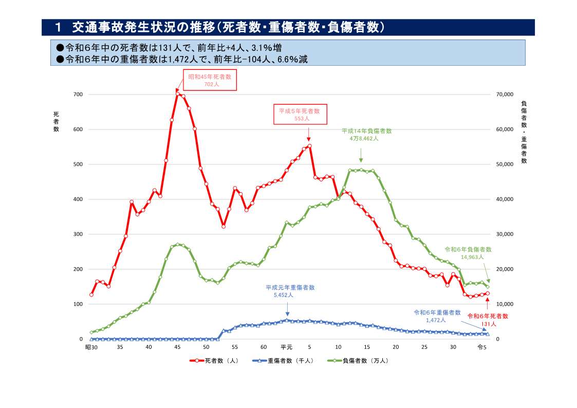 ・ 負傷者数:14,963人(同-1,296人) うち重傷者数:1,472人(同-104人)