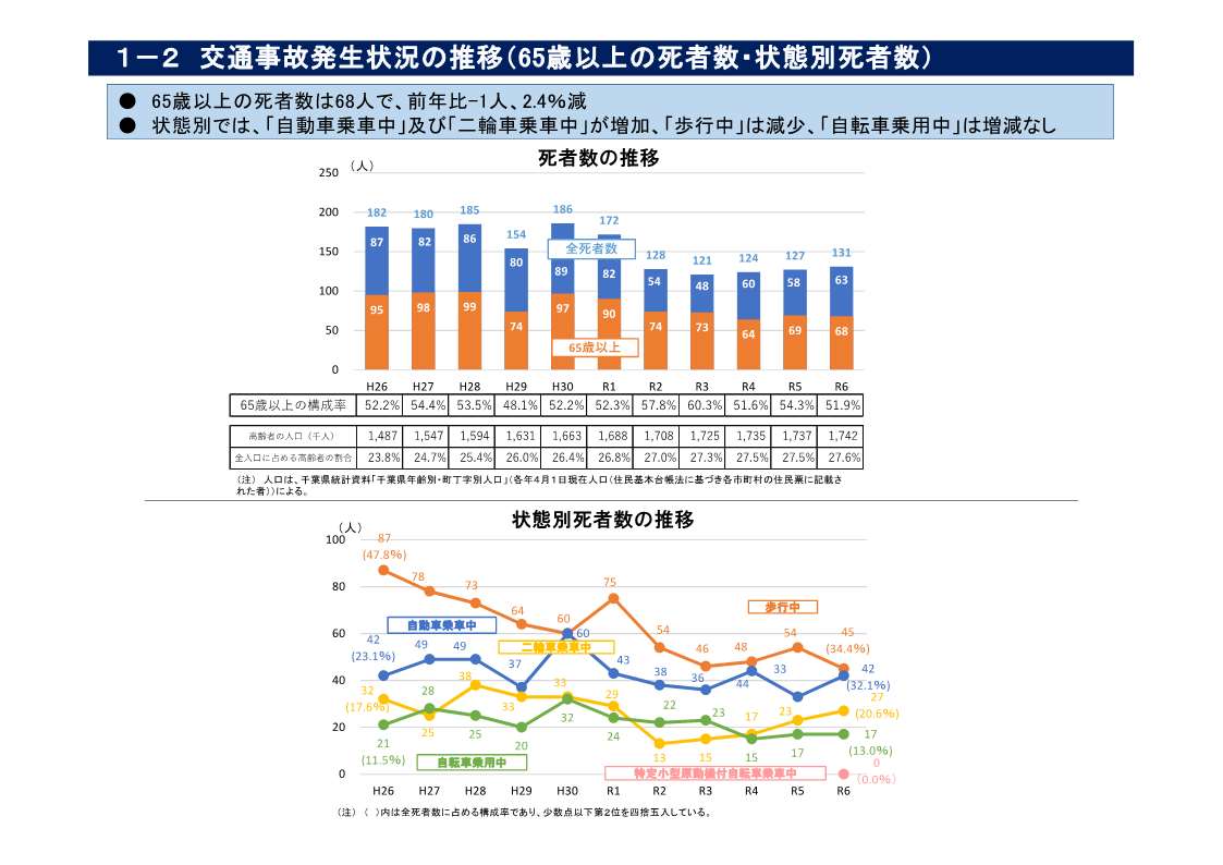 ・ 死者数:131人(同+4人)【内訳:子供2人、若者7人、その他54人、高齢者68人】