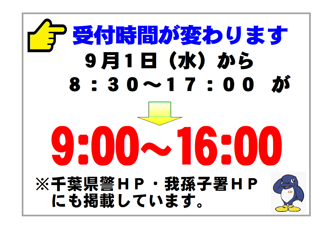 | 我孫子警察署 電話番号:04-7182-0110 (代表) |