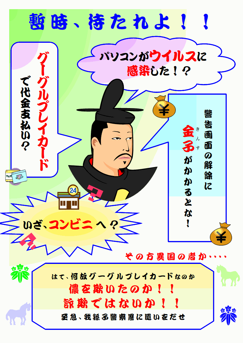 グーグルプレイカードで送金させる詐欺が多発しています!!