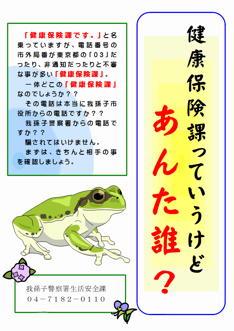 「健康保険課」を騙る者からの電話が我孫子市内で多発しています!!