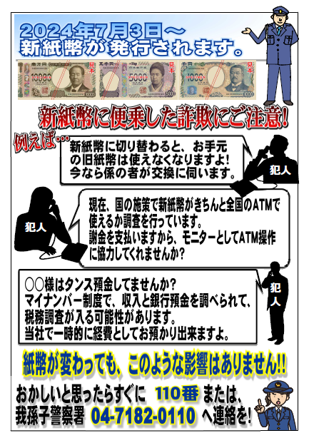 新紙幣発行に乗じた詐欺にご注意ください!