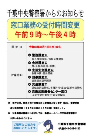 千葉中央警察署受付時間変更のお知らせ(PDF形式:108KB)