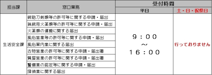- 鉄砲・風俗営業・古物・質屋許可