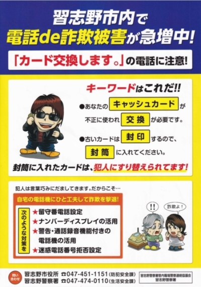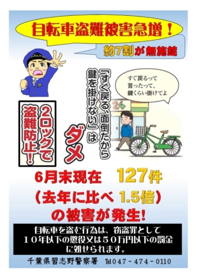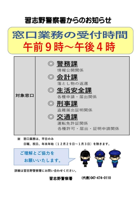 | 習志野警察署 電話番号:047-474-0110 (代表) |