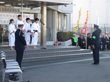 12月11日に自治体、防犯協会、防犯ボランティア団体、交通安全協会などを招致し、出動式を実施しました!