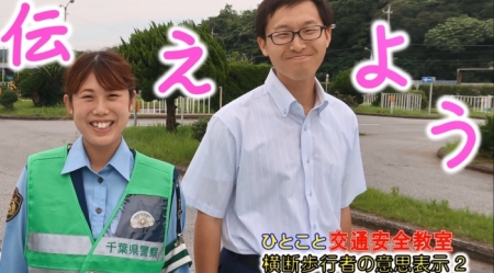 館山警察署の交通課員が「ひとこと交通安全教室」の動画を撮影し、YouTubeの千葉県警公式チャンネルにアップロードしました。今回の内容は「意思表示をしましょう」という題名で、正しい横断歩道の渡り方についてになります。