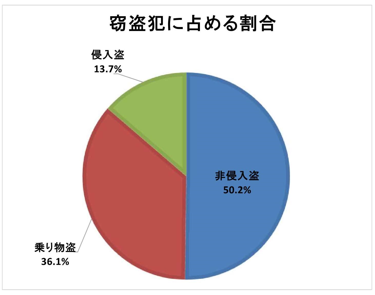窃盗犯の内、約半数を万引きや部品ねらい、車上ねらいなどの非侵入盗が占めています。