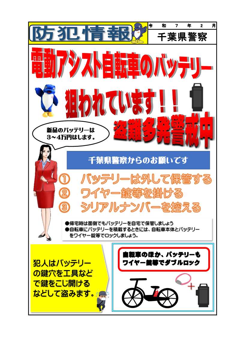 電動アシスト自転車のバッテリー盗難増加中!