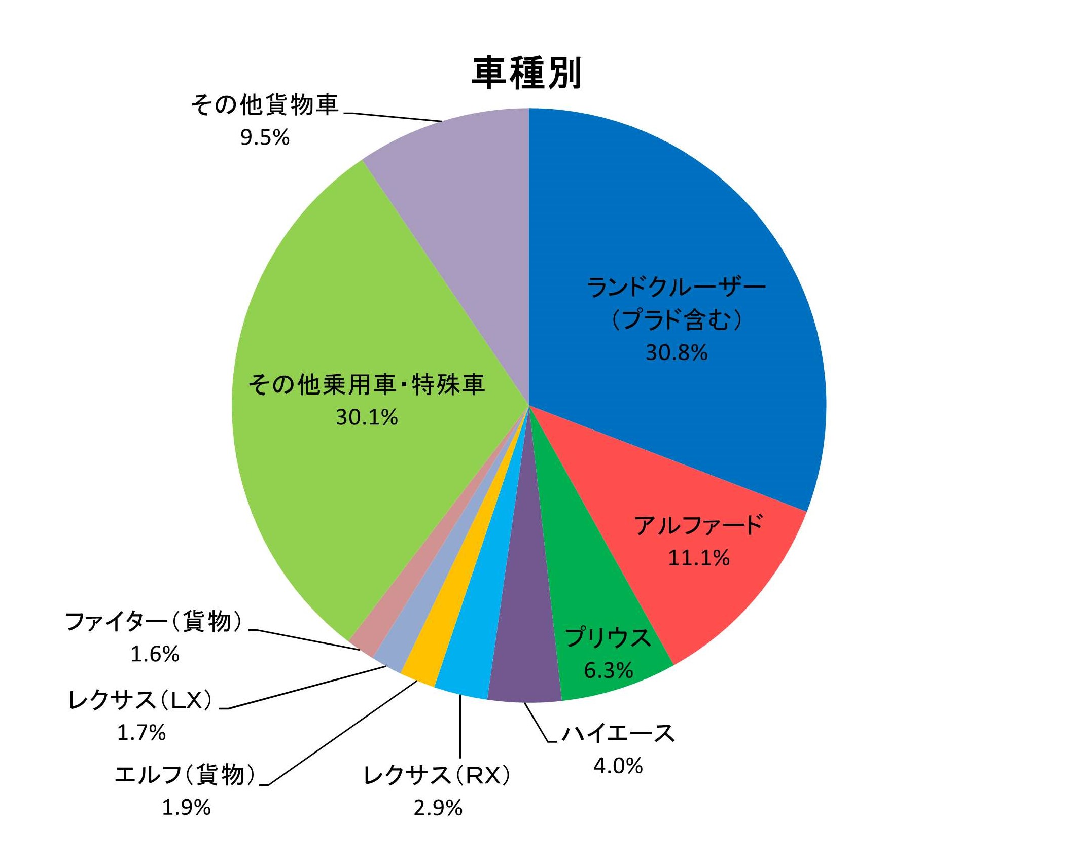 ランドクルーザー(プラドを含む)及びアルファードが、全体の約4割を占めています。