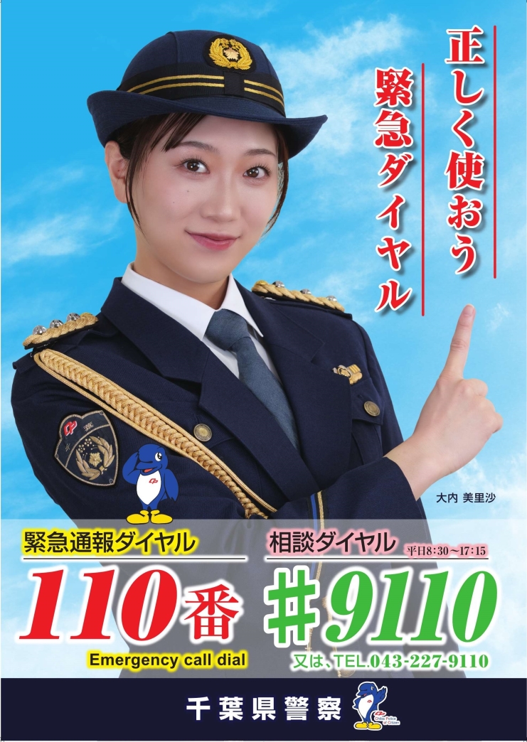 | 千葉県警察本部 通信指令課 電話番号:043-201-0110 (警察本部代表) |