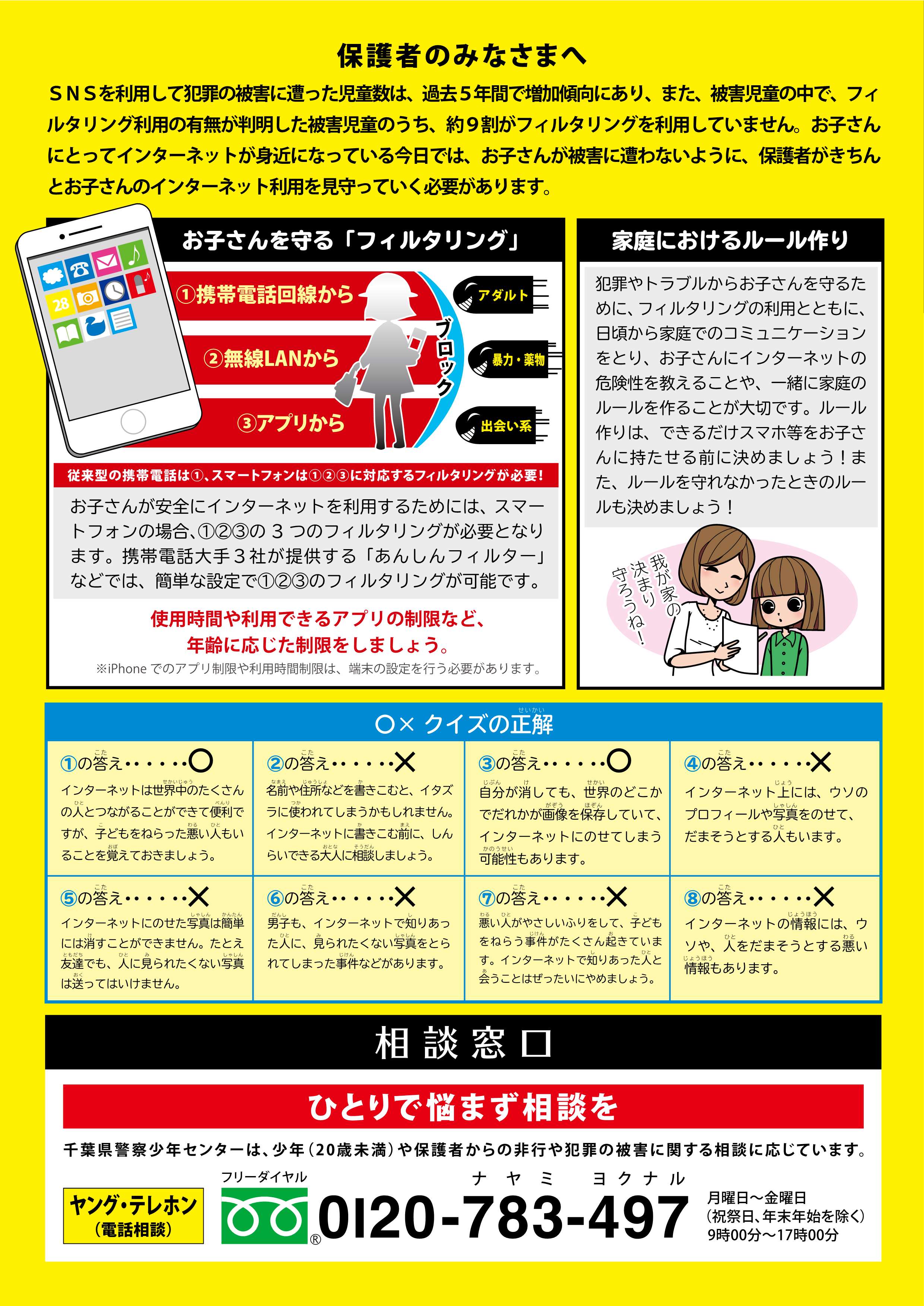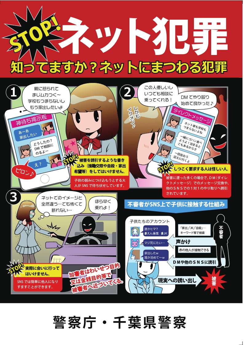 | 千葉県警察本部 少年課 電話番号:043-201-0110 (警察本部代表) |