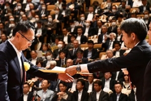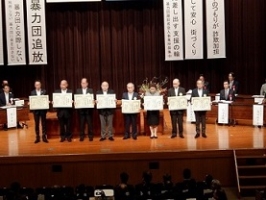 大会第1部では、千葉県知事、県警本部長、県民会議理事長による主催者挨拶等が行われた後、暴力団追放運動に功労のあった団体、個人に対し、関東管区警察局長及び関東管区内暴力追放運動推進センター連絡協議会会長の連名による表彰、千葉県警察本部長及び県民会議理事長の連名による感謝状の授与が行われました。